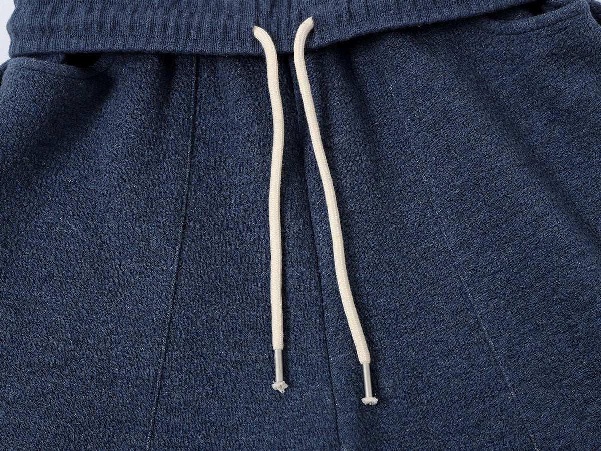 Oversized relaxed fit with elastic waistband,a luxuriously soft and substantial handfeel, textured fabric, neither too thick nor too thin, perfect for spring and autumn wear. The evenly distributed bubble-like texture on the surface enhances the visual appeal. The fabric is soft and comfortable to the touch, while its unique structure ensures a crisp and well-defined silhouette.