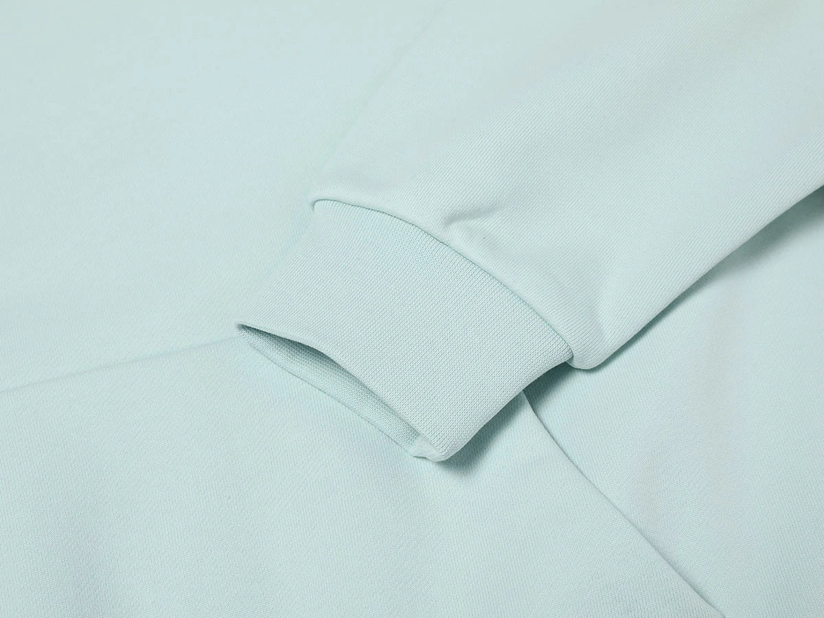 Boxy cropped silhouette, made from 600g heavy-weight fleece fabric. It uniquely combines a fluffy texture with excellent drape, effectively maintaining the superior outline of the garment for a structured and premium look when worn.